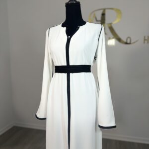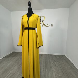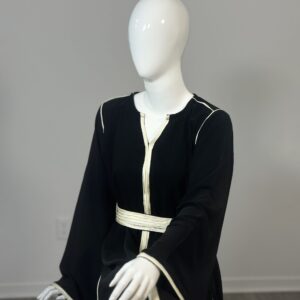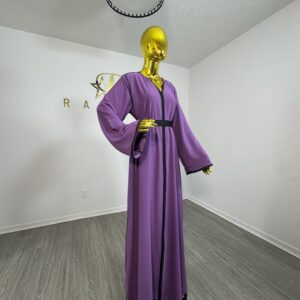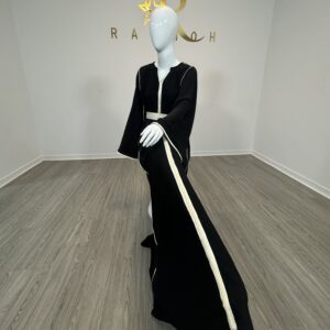 With a full-length design and a classic round neckline with slit, this abaya offers both practicality and elegance. Whether you’re dressing up for a special occasion or looking for a sophisticated everyday option, this set has you covered.